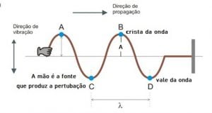 Na classificação de acordo com a vibração, encontram-se as ondas transversais e longitudinais. As ondas transversais possuem uma vibração perpendicular à sua propagação, como quando jogamos um objeto na água. Já as ondas longitudinais, a vibração acompanha paralelamente à sua propagação, como as ondas sonoras.